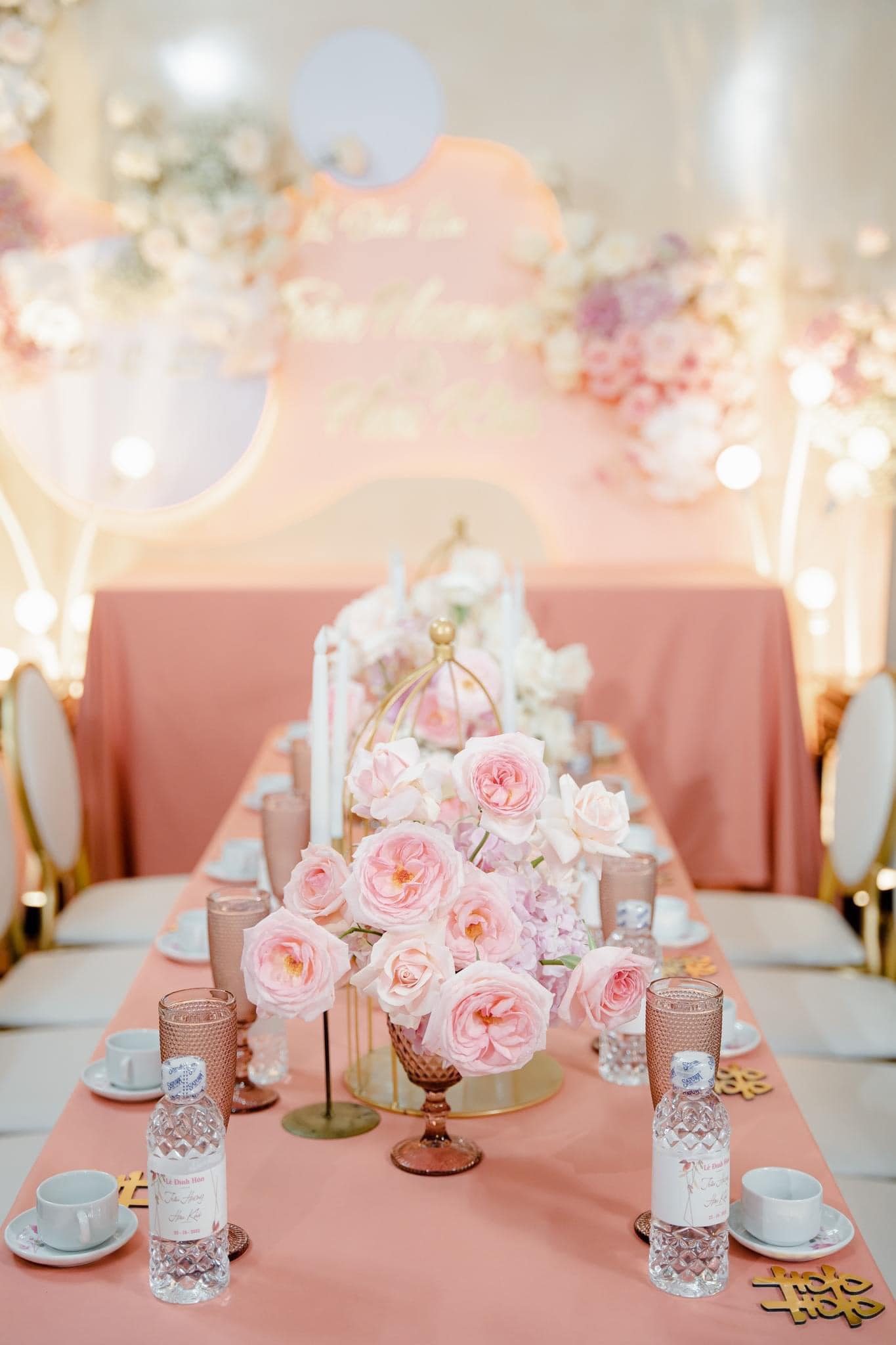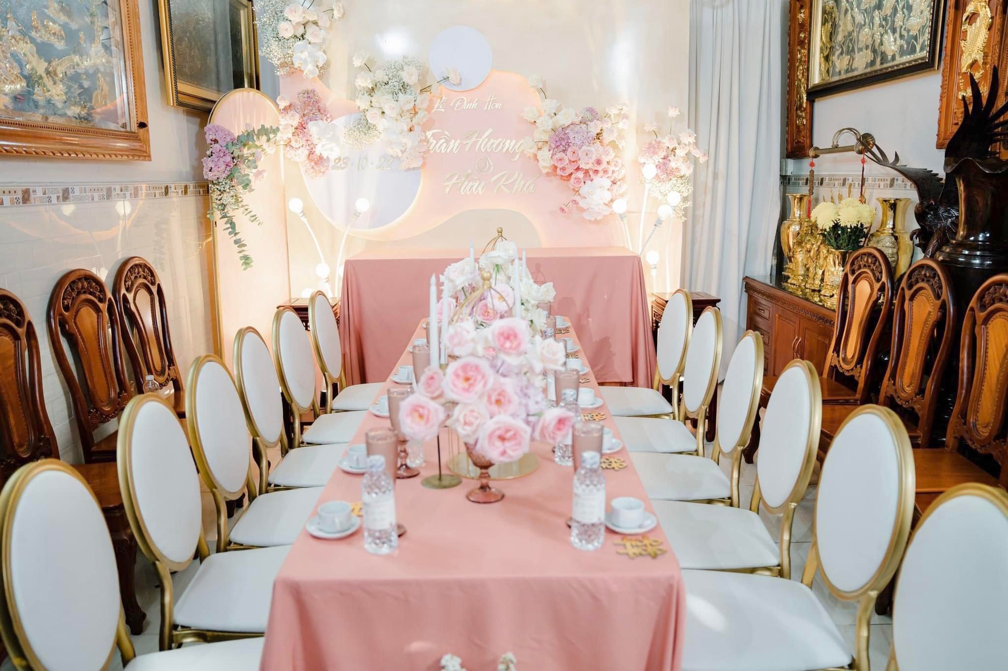 –  Bàn dài 2m4 phủ gấm voan lụa