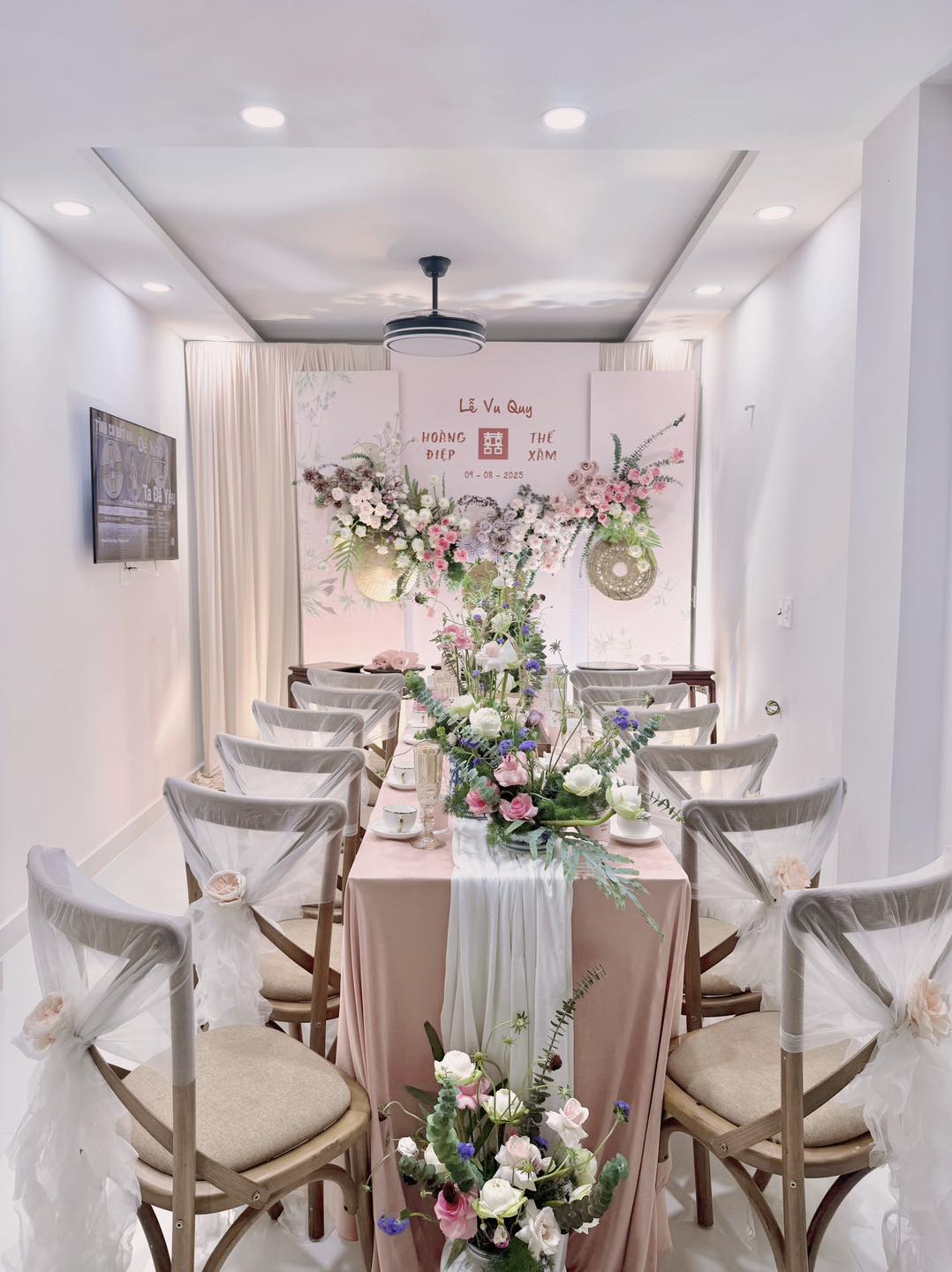 –  Bàn dài 2m4 phủ gấm voan lụa
