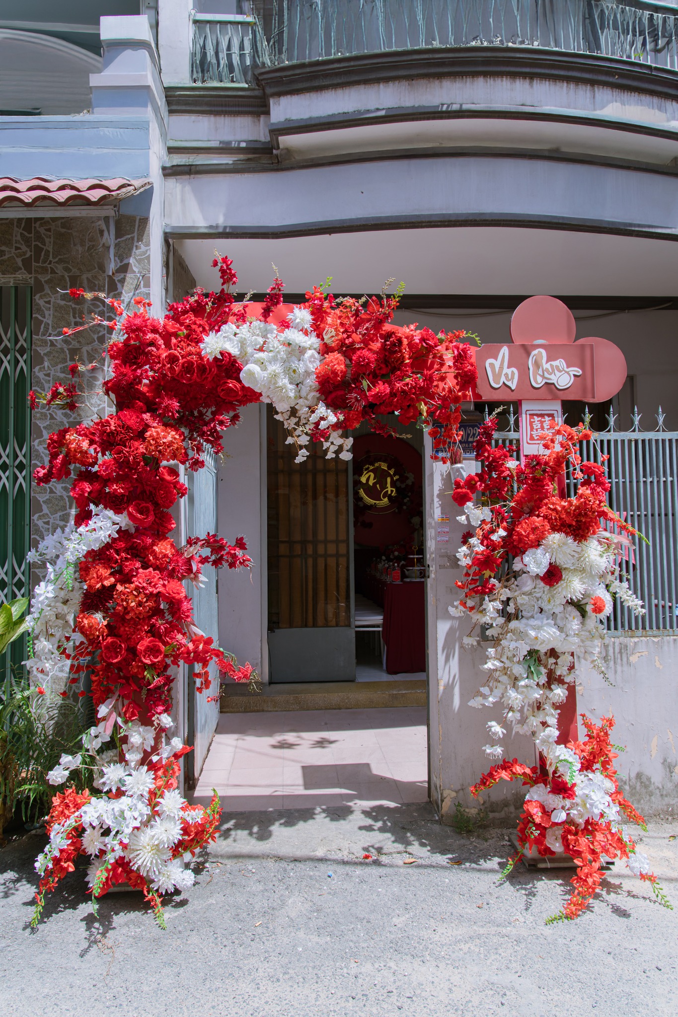 KHUYẾN MÃI Cổng hoa lụa cao cấp và bảng VU QUY ,TÂN HÔN. 12 chai nước suối nhãn tên CD-CR 2 dĩa 3 tầng quý khách để bánh kẹo, trái cây, hạt dưa,... Tặng 10 hoa cài áo Tặng 1 bảng tên dâu rể ( treo tường hoặc ngoài cổng ) Miễn phí phí vận chuyển và lắp đặt trang trí nhà trong vòng bán kính 5km (tính từ shop)