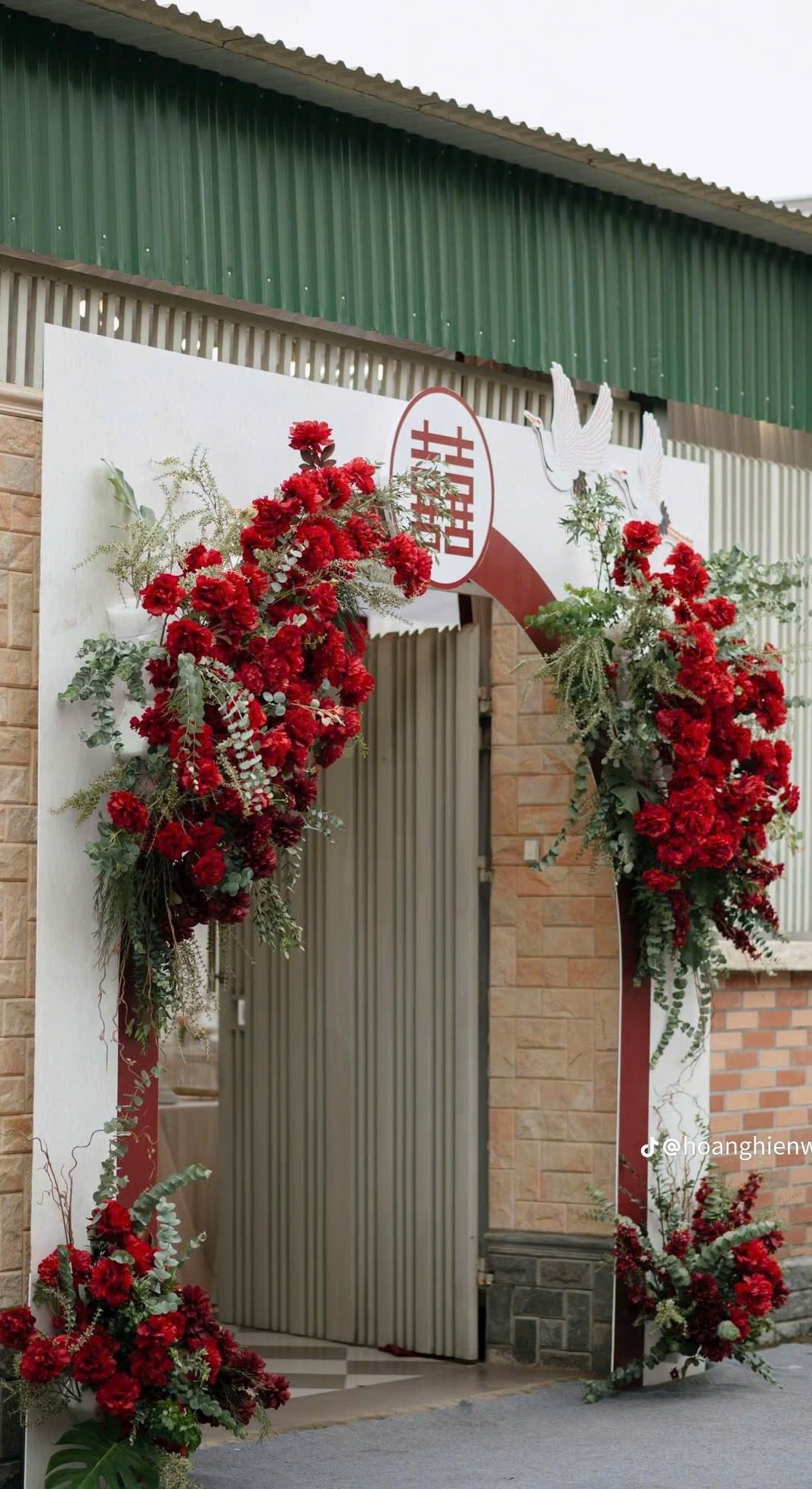 GÓI HOA LỤA – Phong voan màu – Khung backdrop 3D thiết kế – hoa lụa thiết kế theo mô hình – Tên Cô Dâu Chú Rể được thiết kế riêng