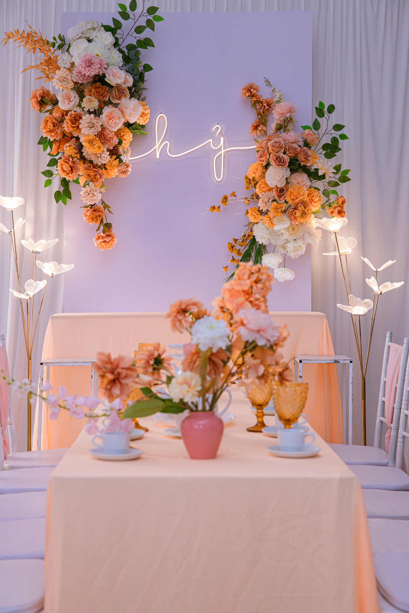 - Khung backdrop thiết kế hoa lụa